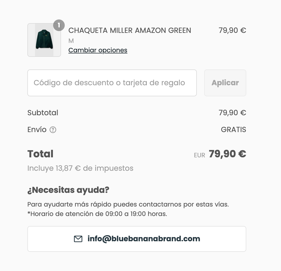 Deves introduzi-lo no checkout. Depois de adicionares os produtos ao carrinho, vais ver uma caixa à direita com a indicação “Código de desconto ou cartão oferta”.